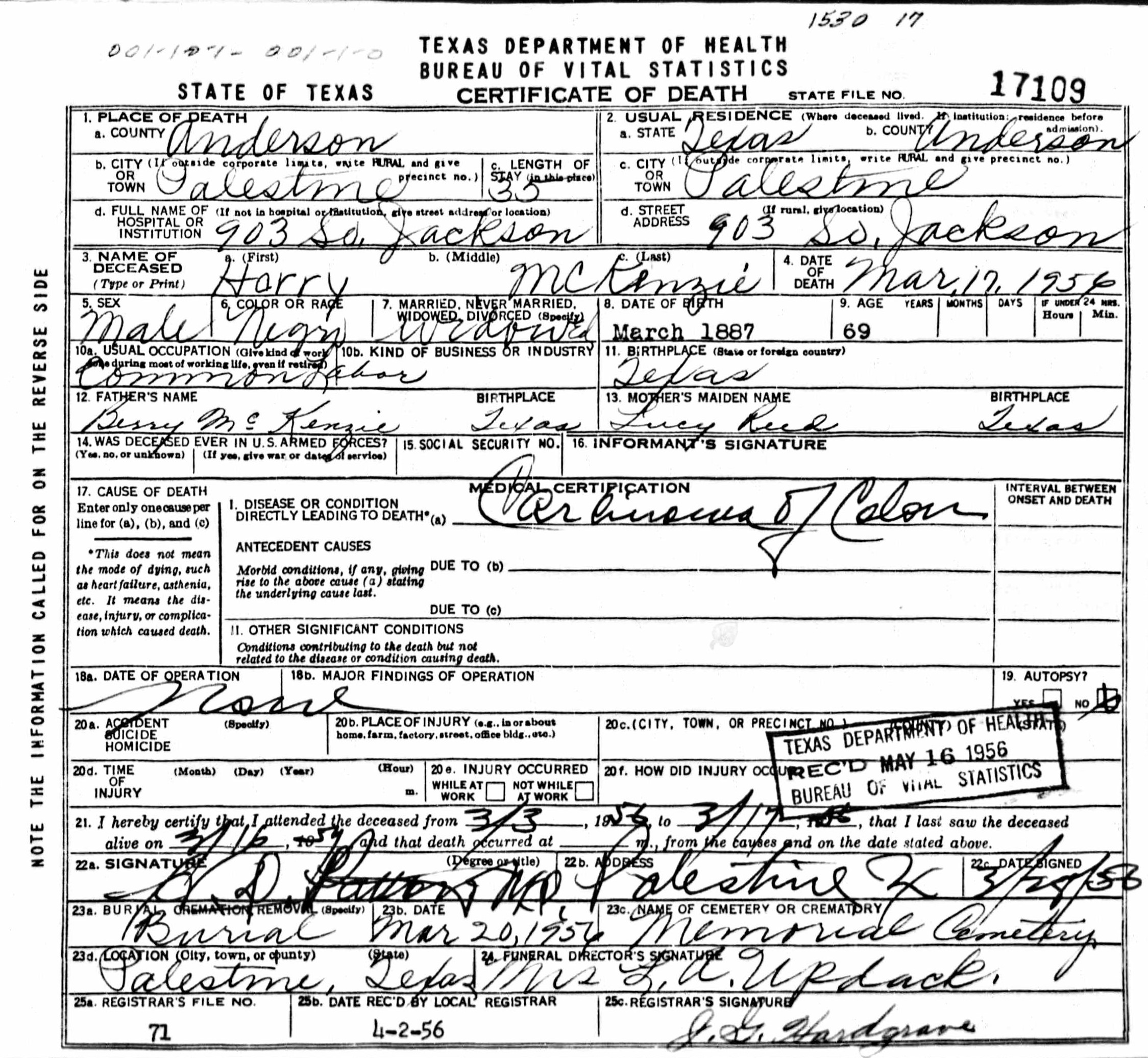 Born: March 1887 - Texas