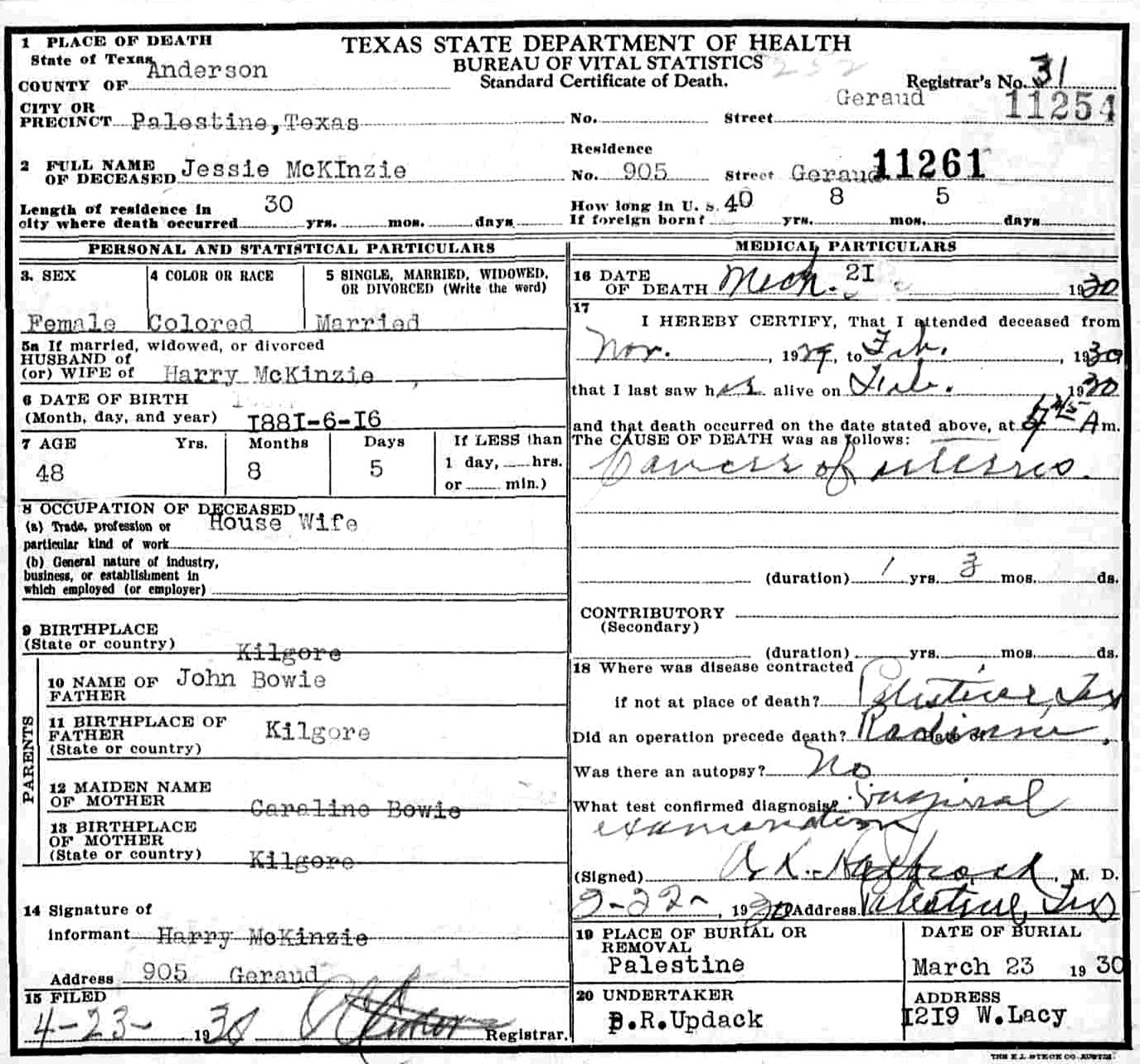 Born: 16 June 1881 - Kilgore, Texas