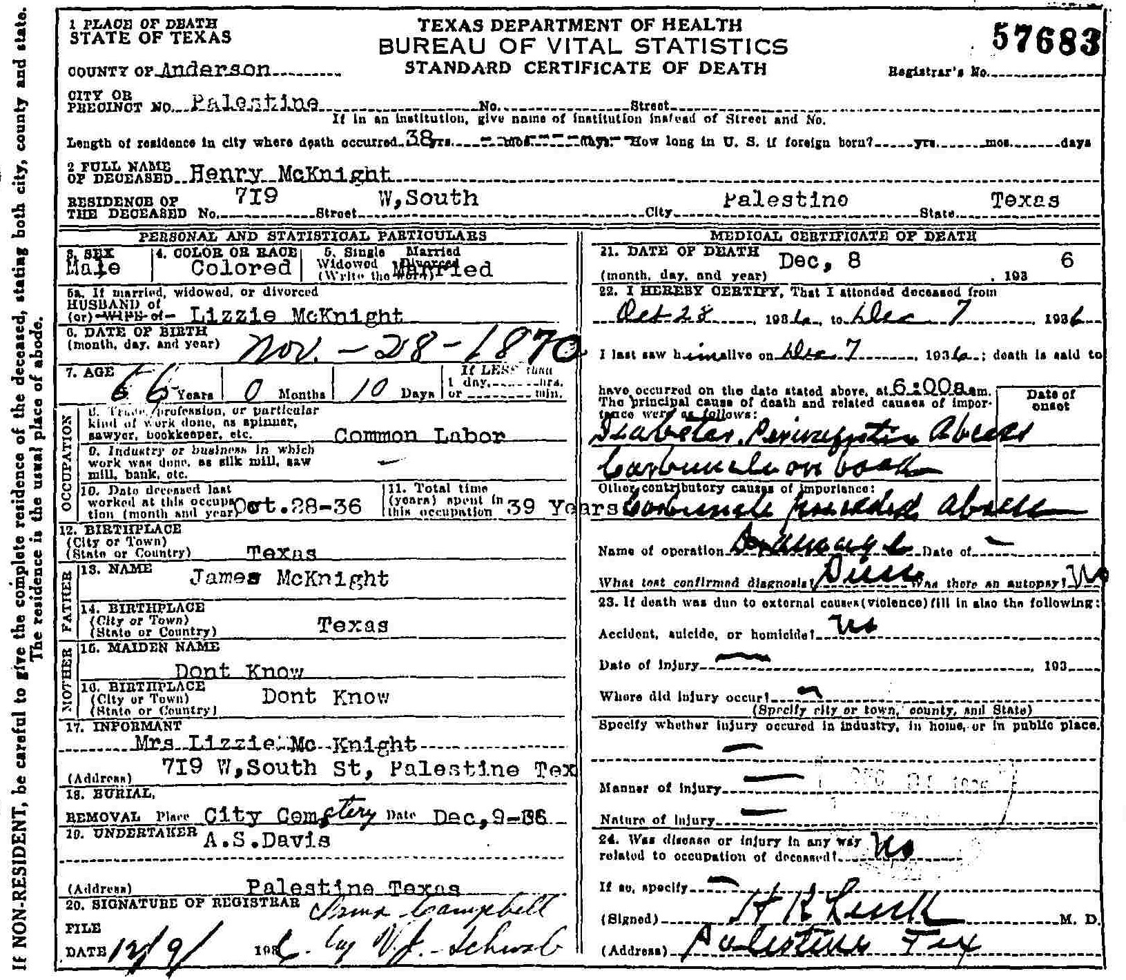 Born: 29 November 1870 - Texas