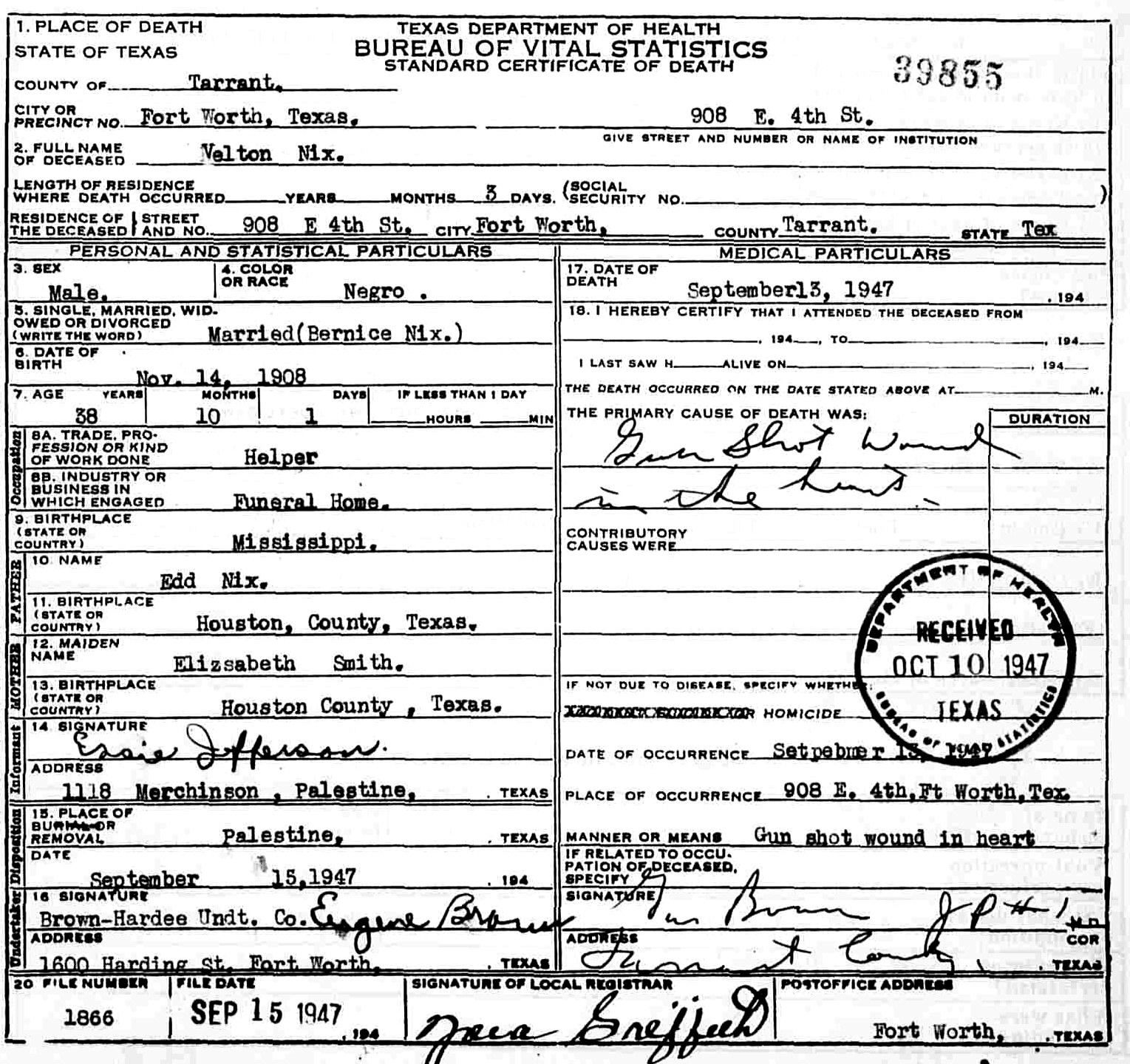 Died:   13 September 1957 - Fort Worth, Tarrant, Texas