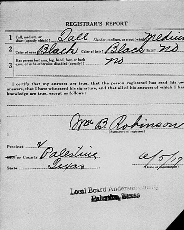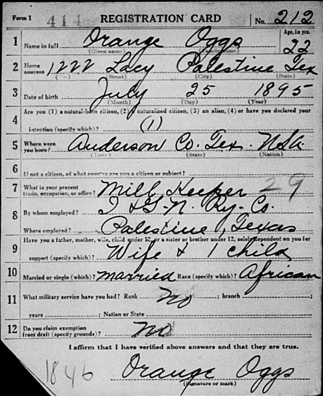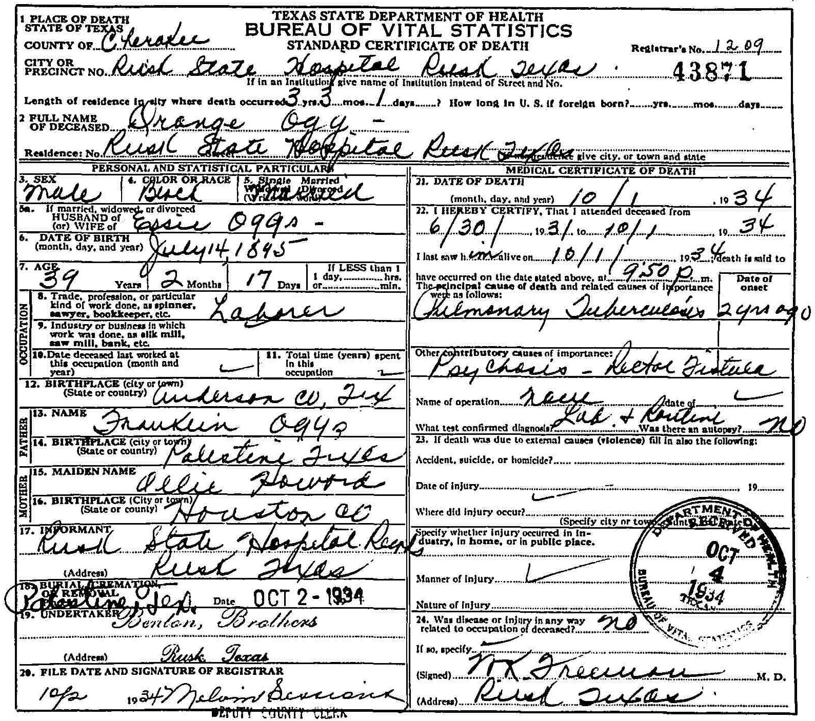 Father:  Franklin Oggs - Palestine, Anderson, Texas