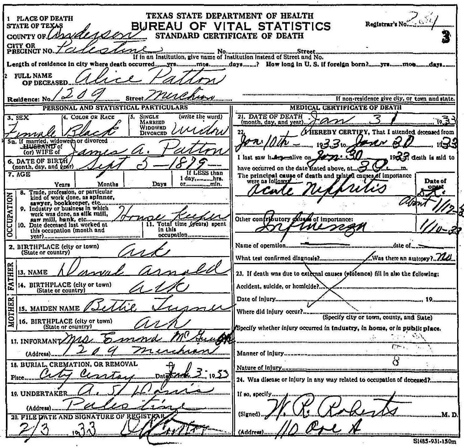 Died:  31 January 1933 - Palestine, Anderson, Texas