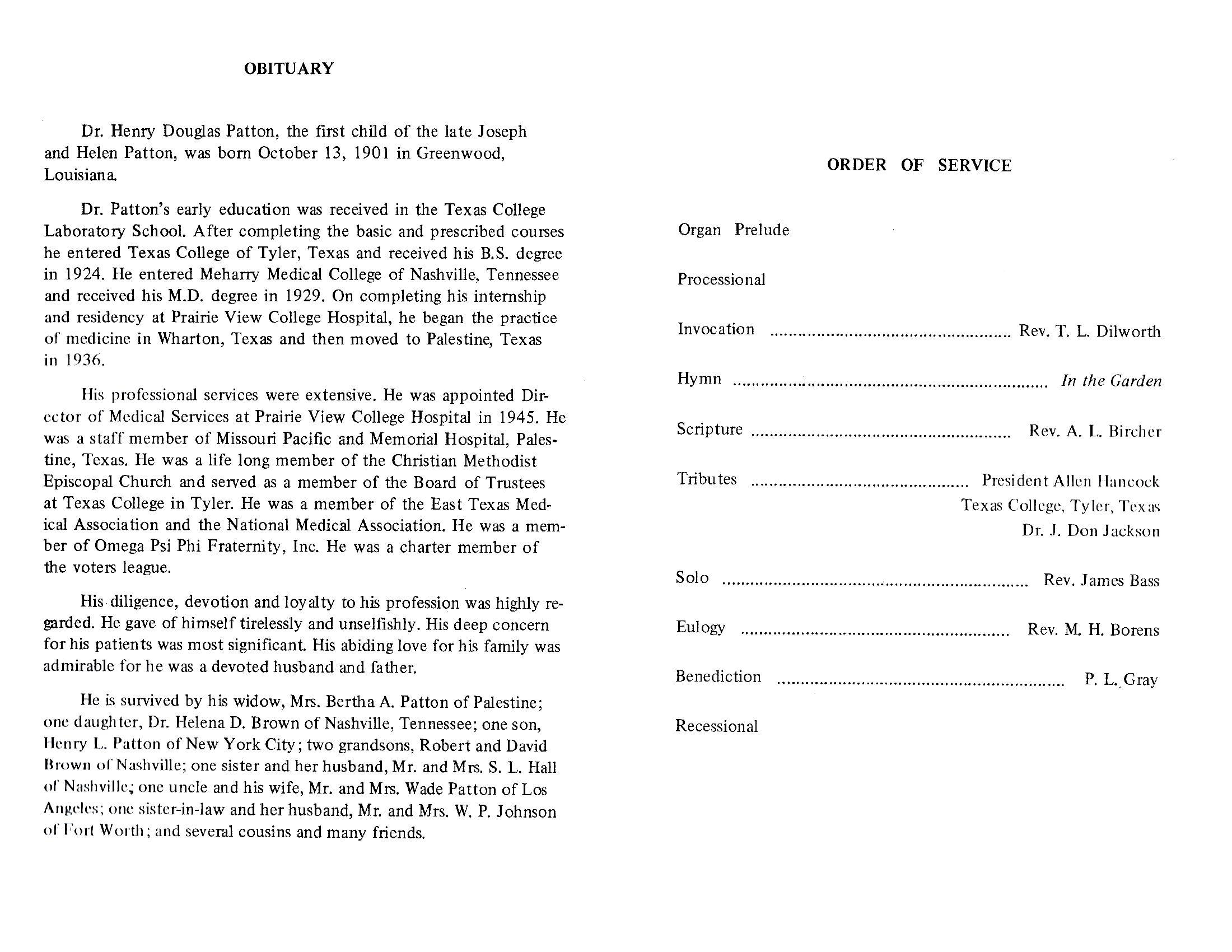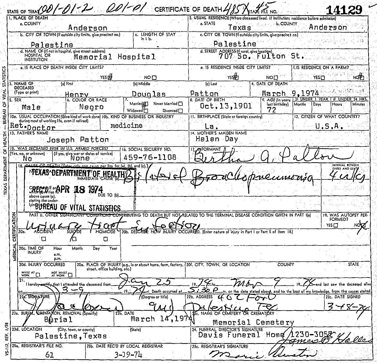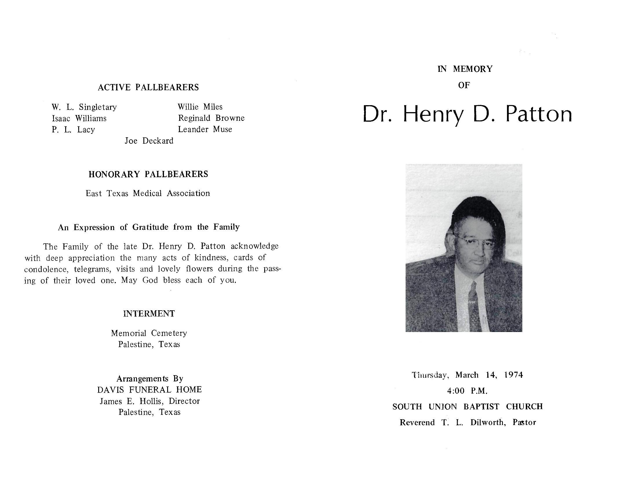 A. Patton of Palestine; one daughter, Dr. Helena D. Brown of