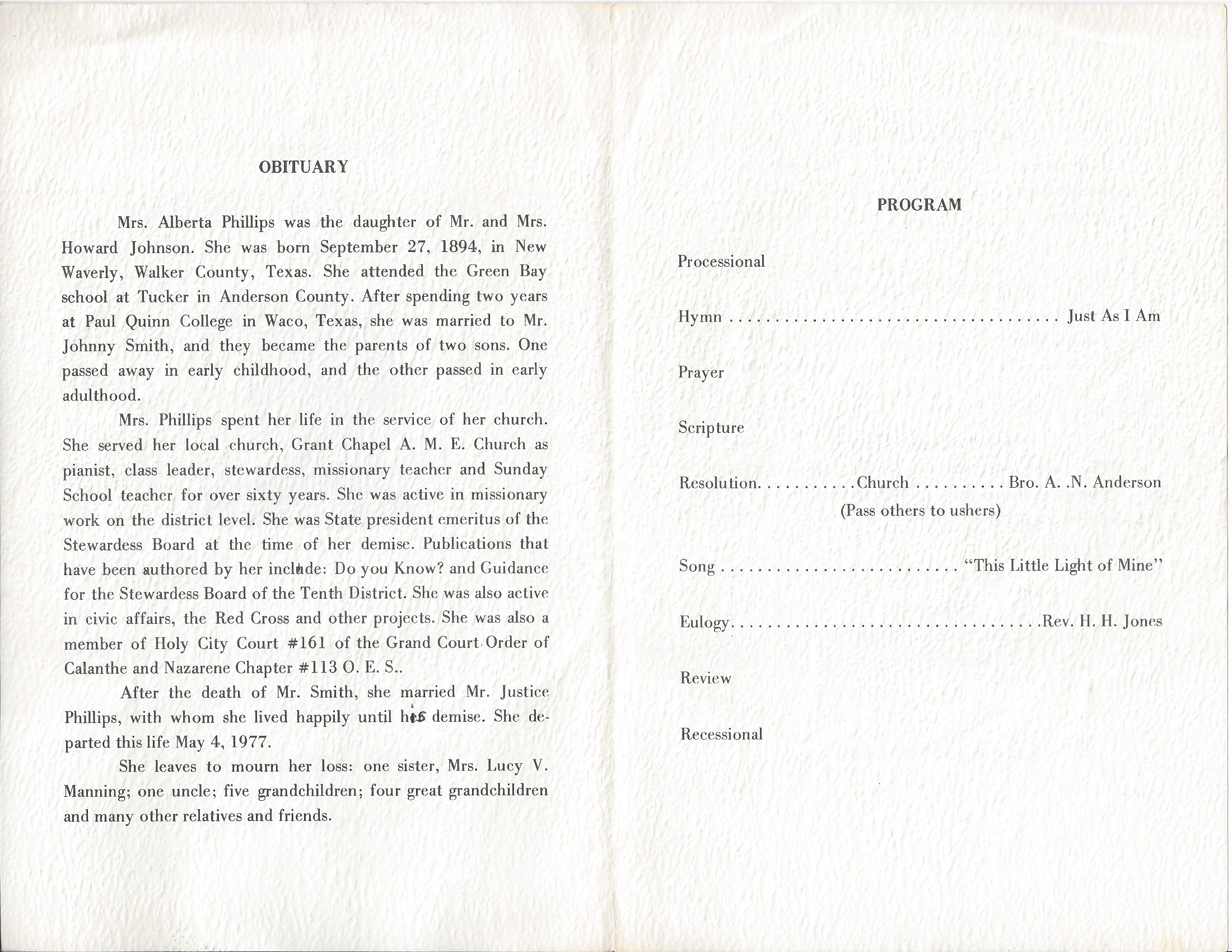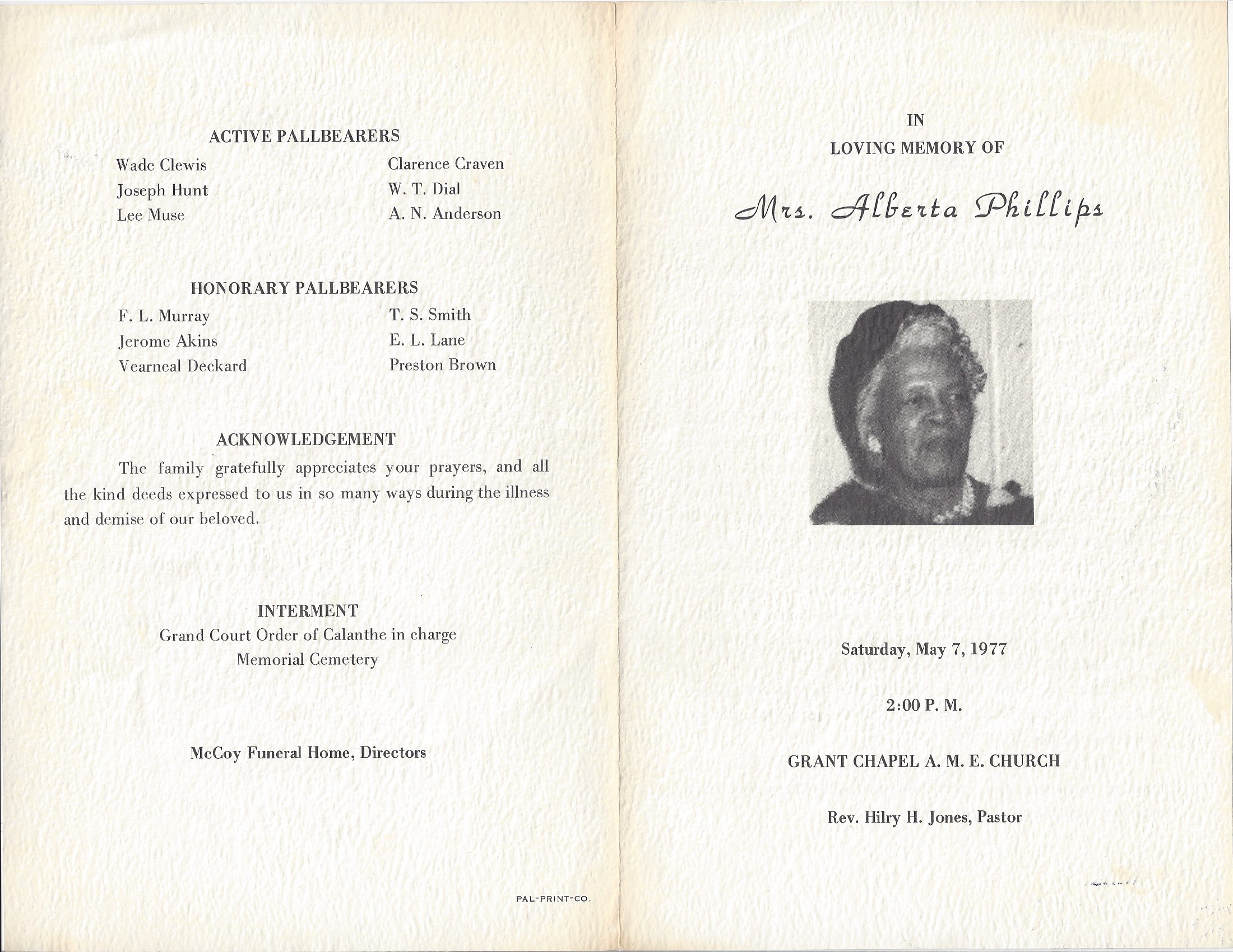 Mrs. Alberta Phillips was the daughter of
