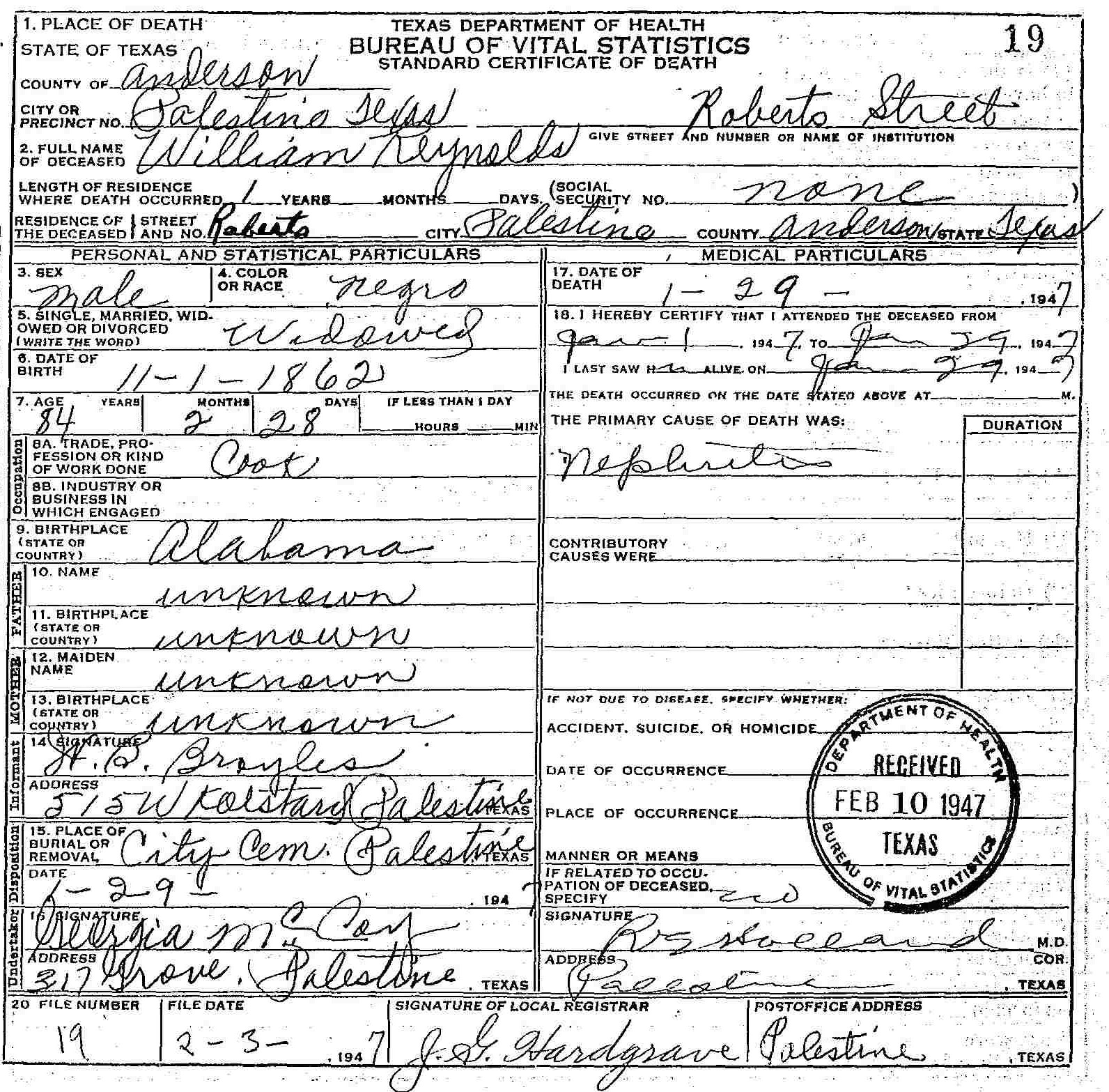 Born: 11 January 1862 -