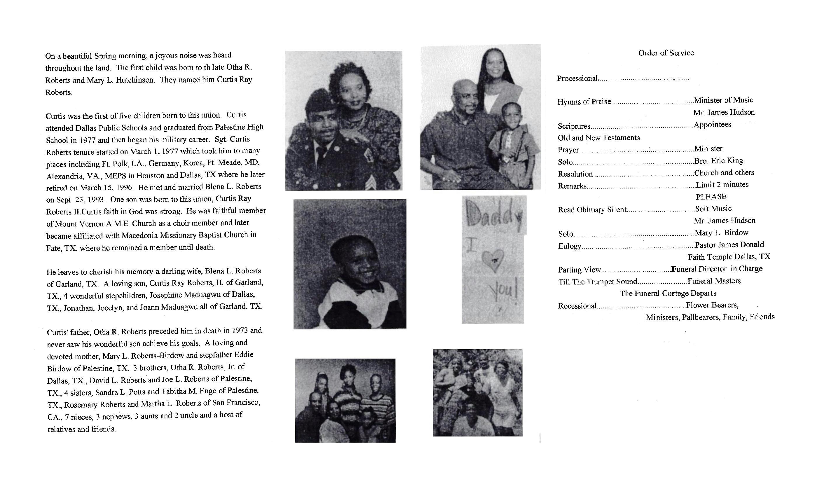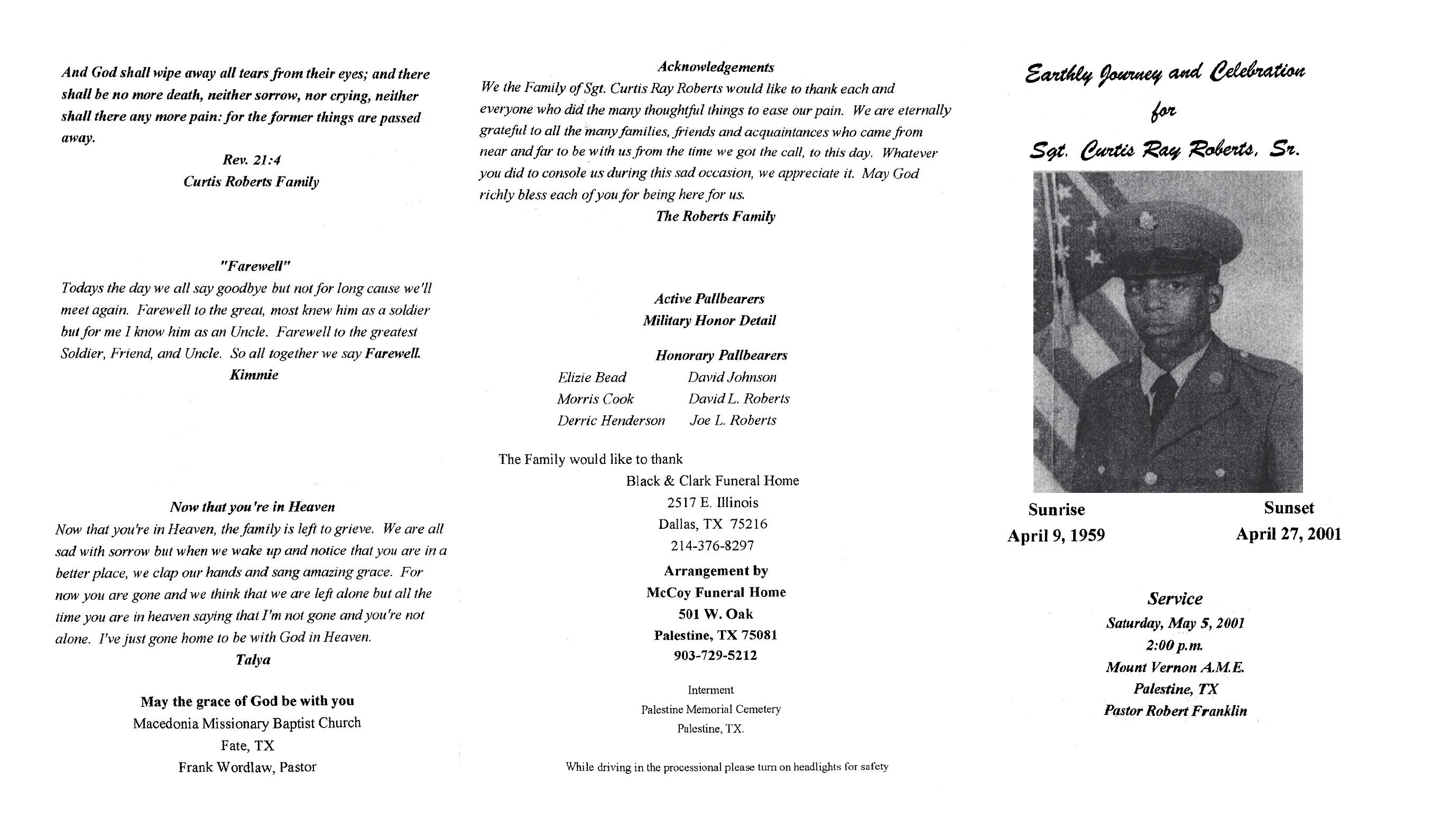 Notes: 01 Mar 1973: Name listed as CURTIS RAY ROBERTS; 06 Feb 1997: Name listed as CURTIS RAY ROBERTS SR; 05 May 2001: Name listed as CURTIS I ROBERTS