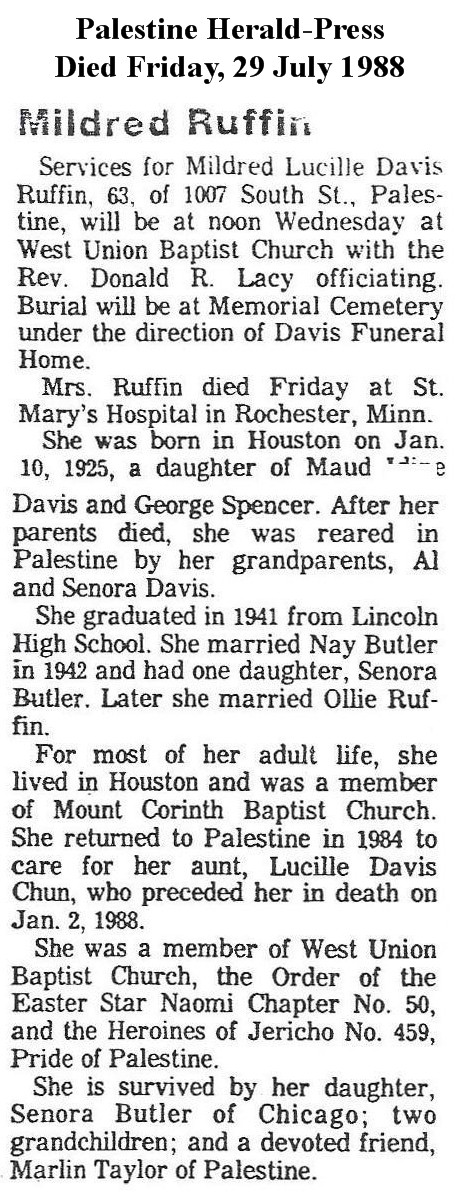 returned to Palestine in 1984 to care for her aunt, Lucille Davis
