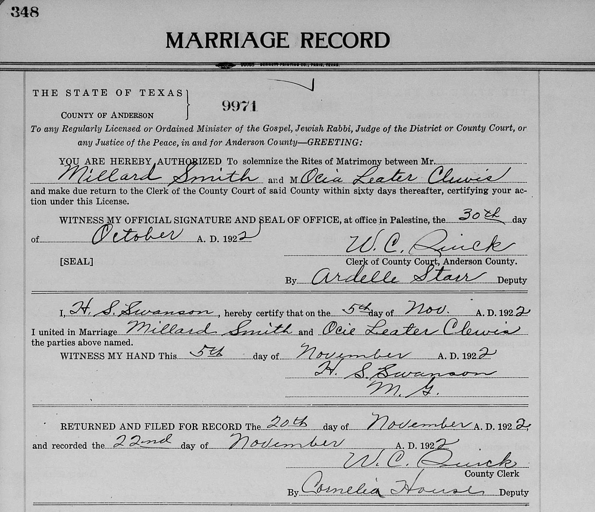 marriage of Mr. Camp and Lue Clewis. She was one of five