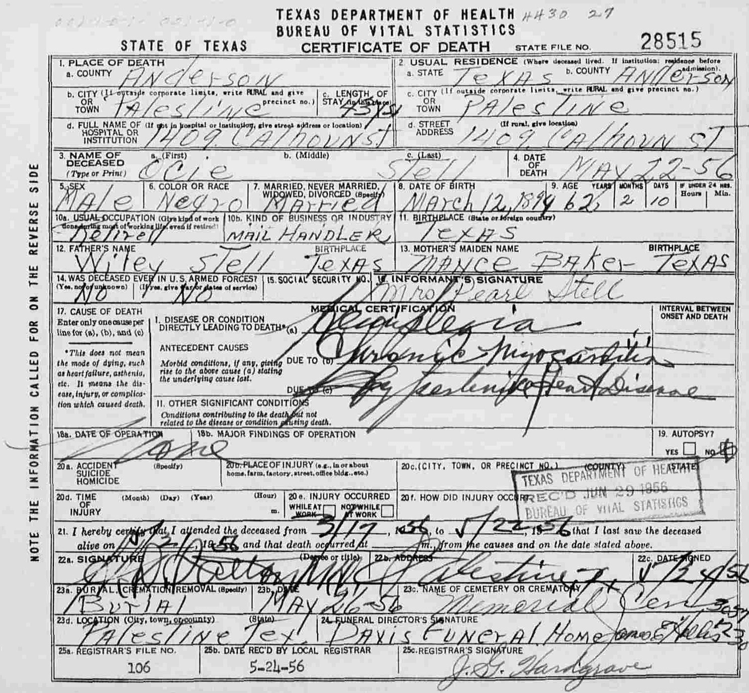 Born:  12 March 1893/1894 - Palestine, Anderson, Texas