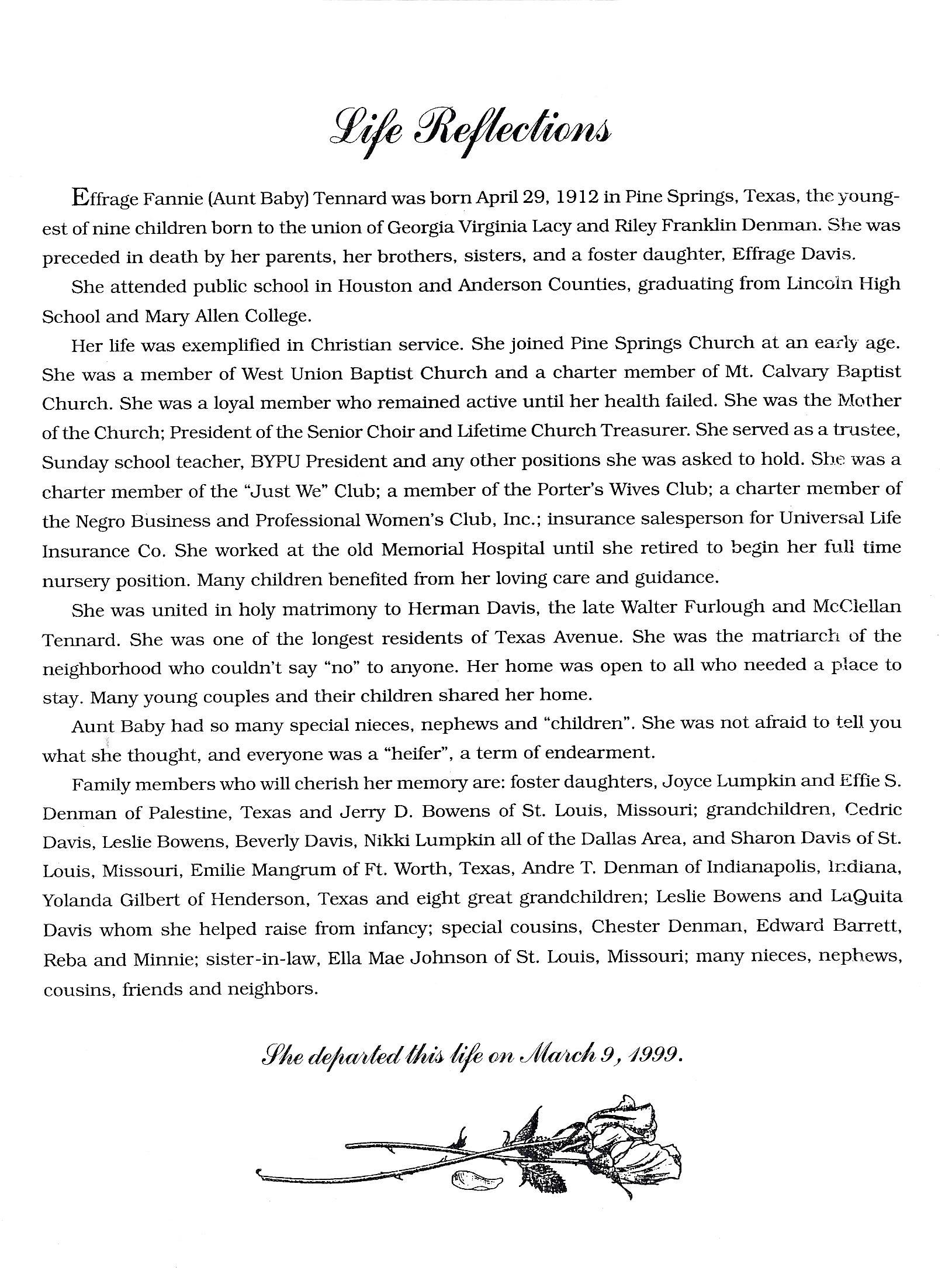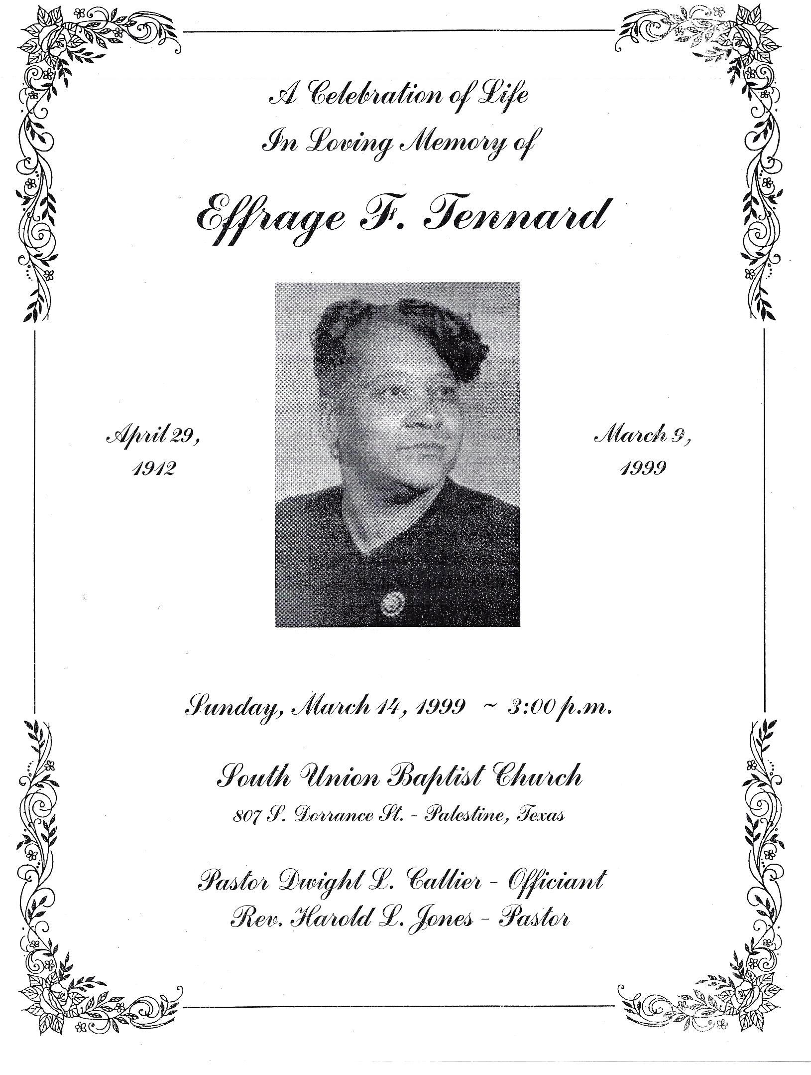 Effrage Fannie (Aunt Baby) Tennard was born