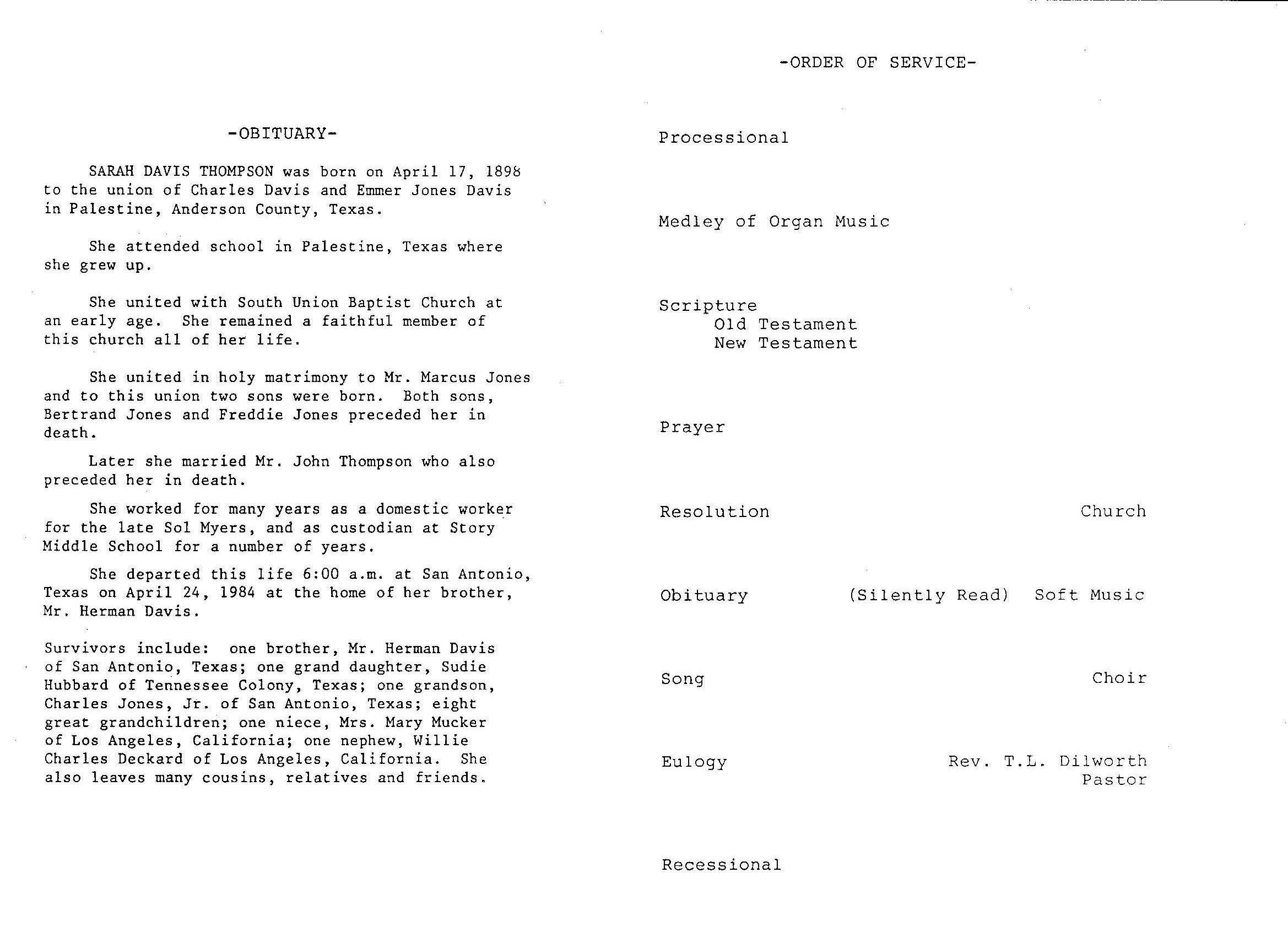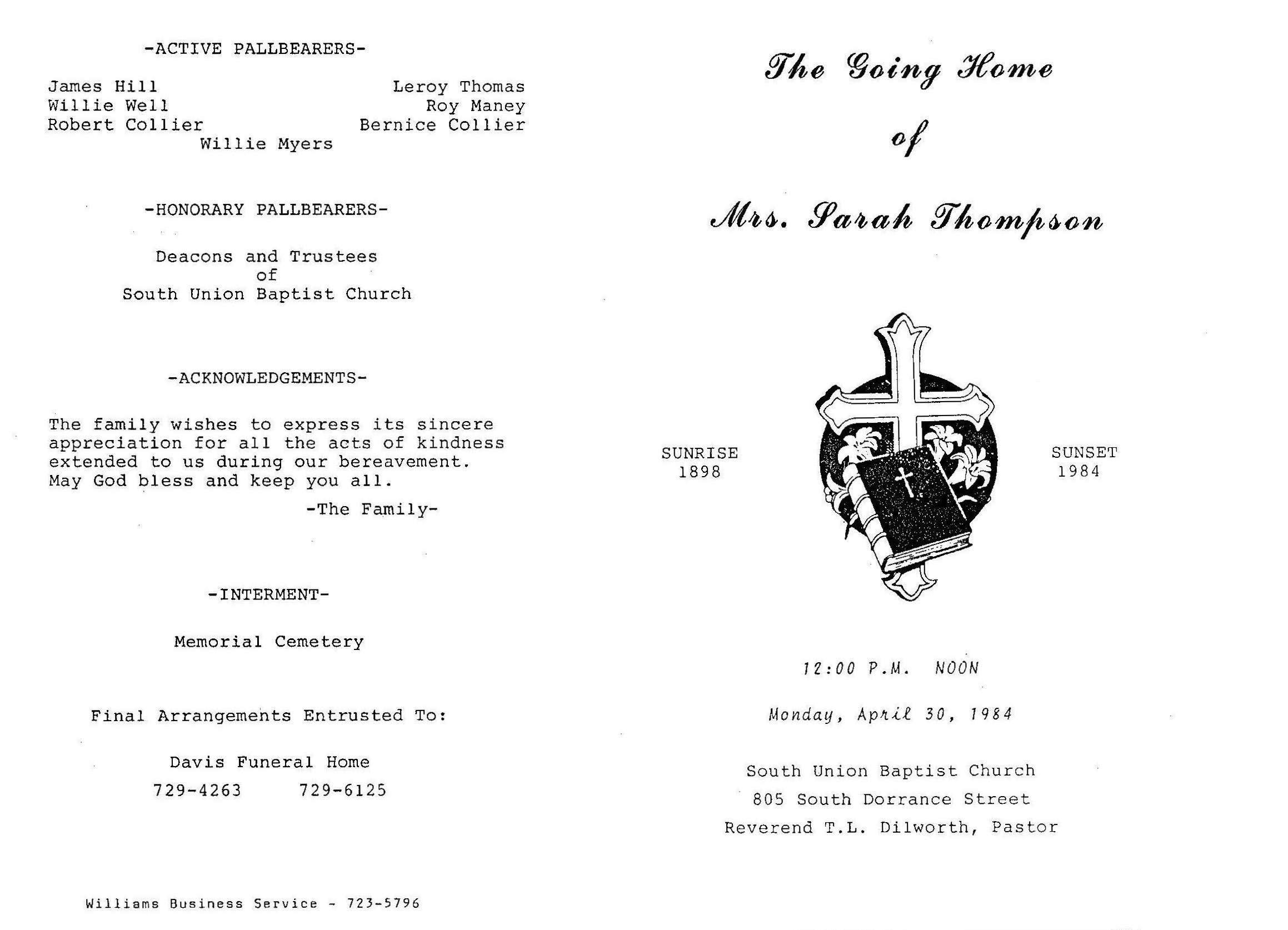 SARAH DAVIS THOMPSON was born on April 17,