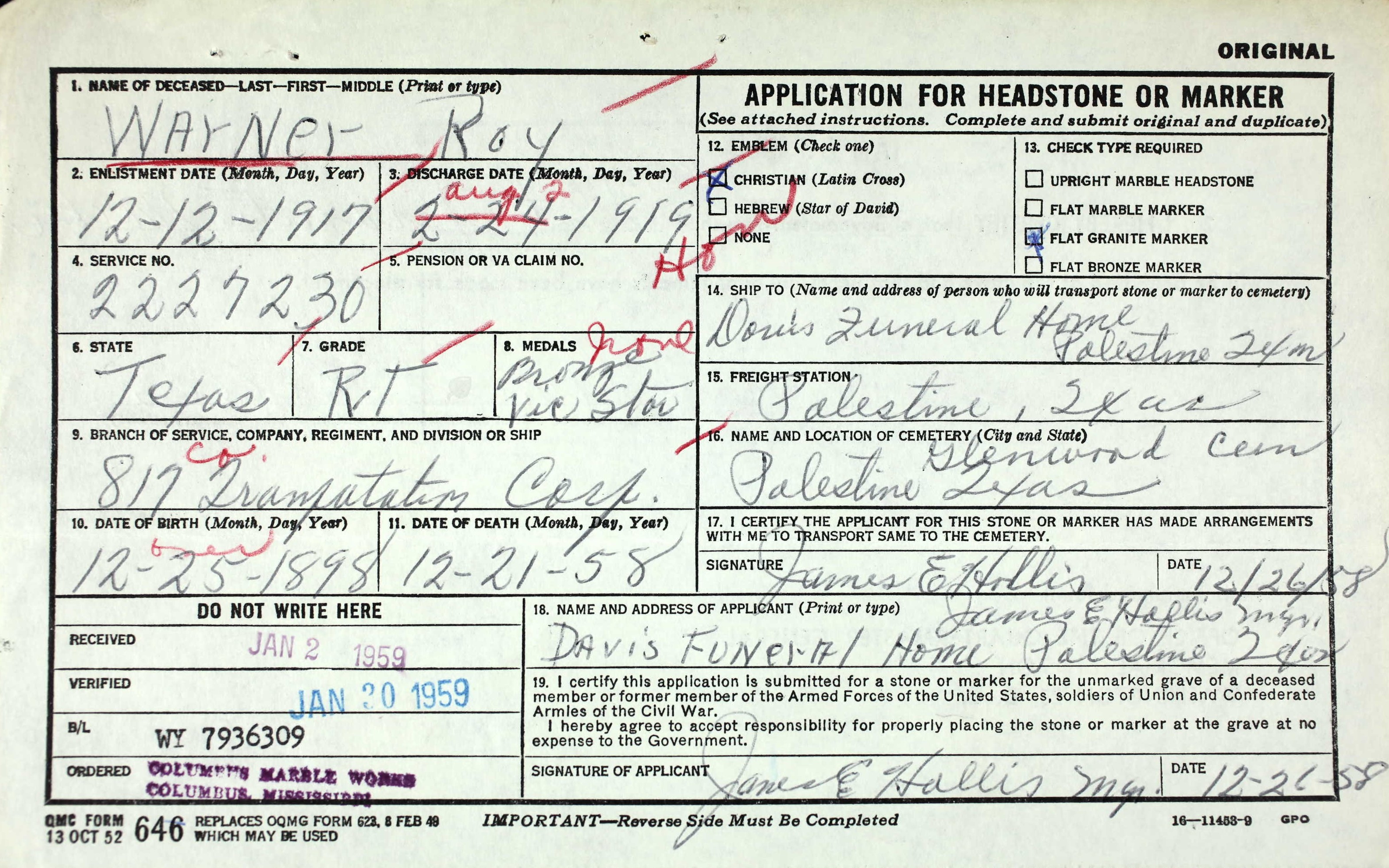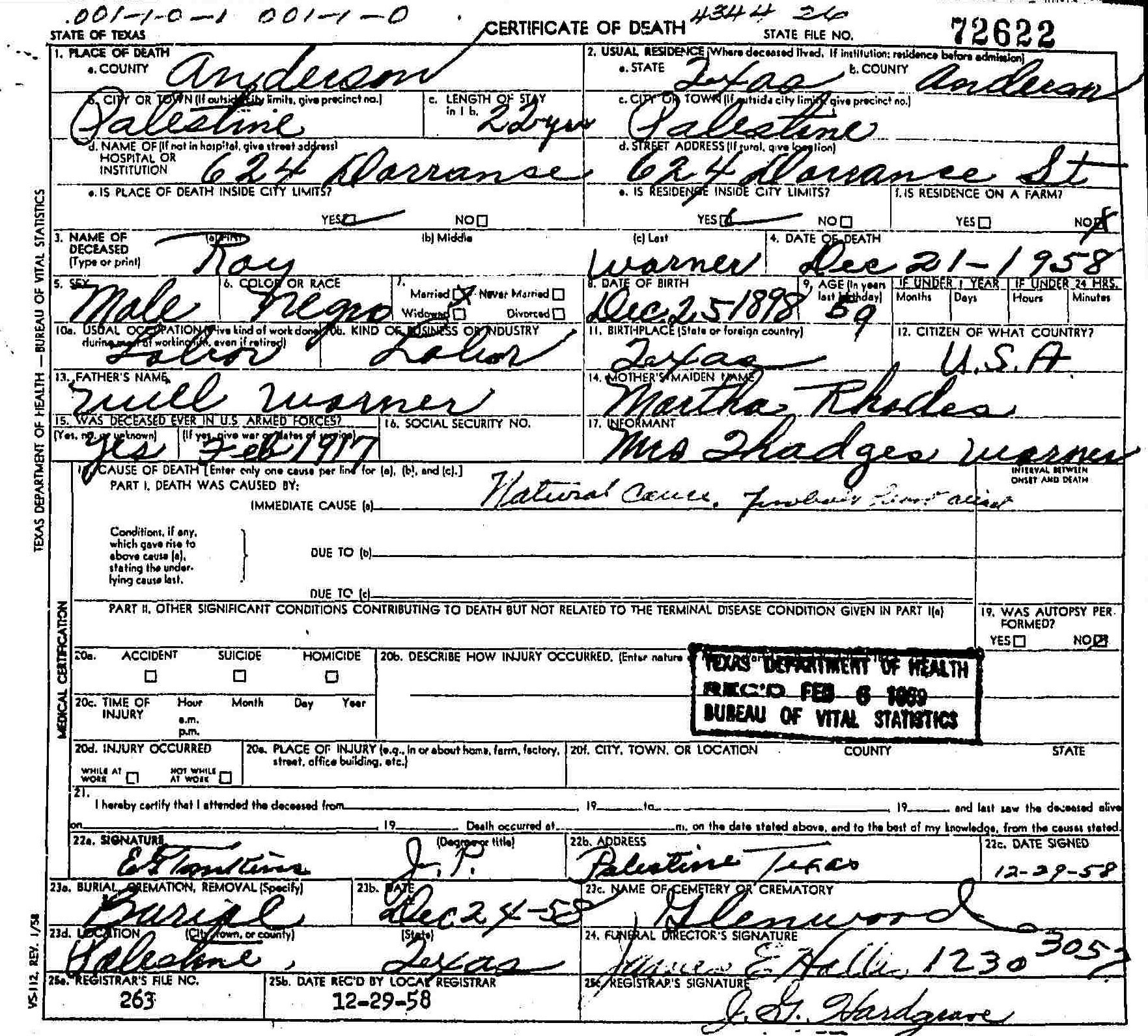 Born: 25 December 1898 - Texas