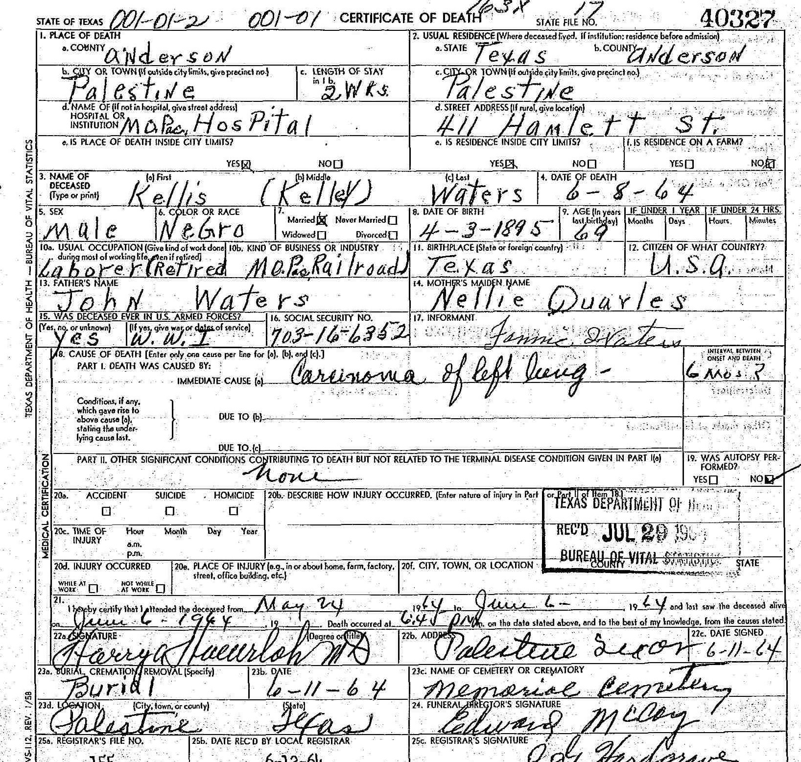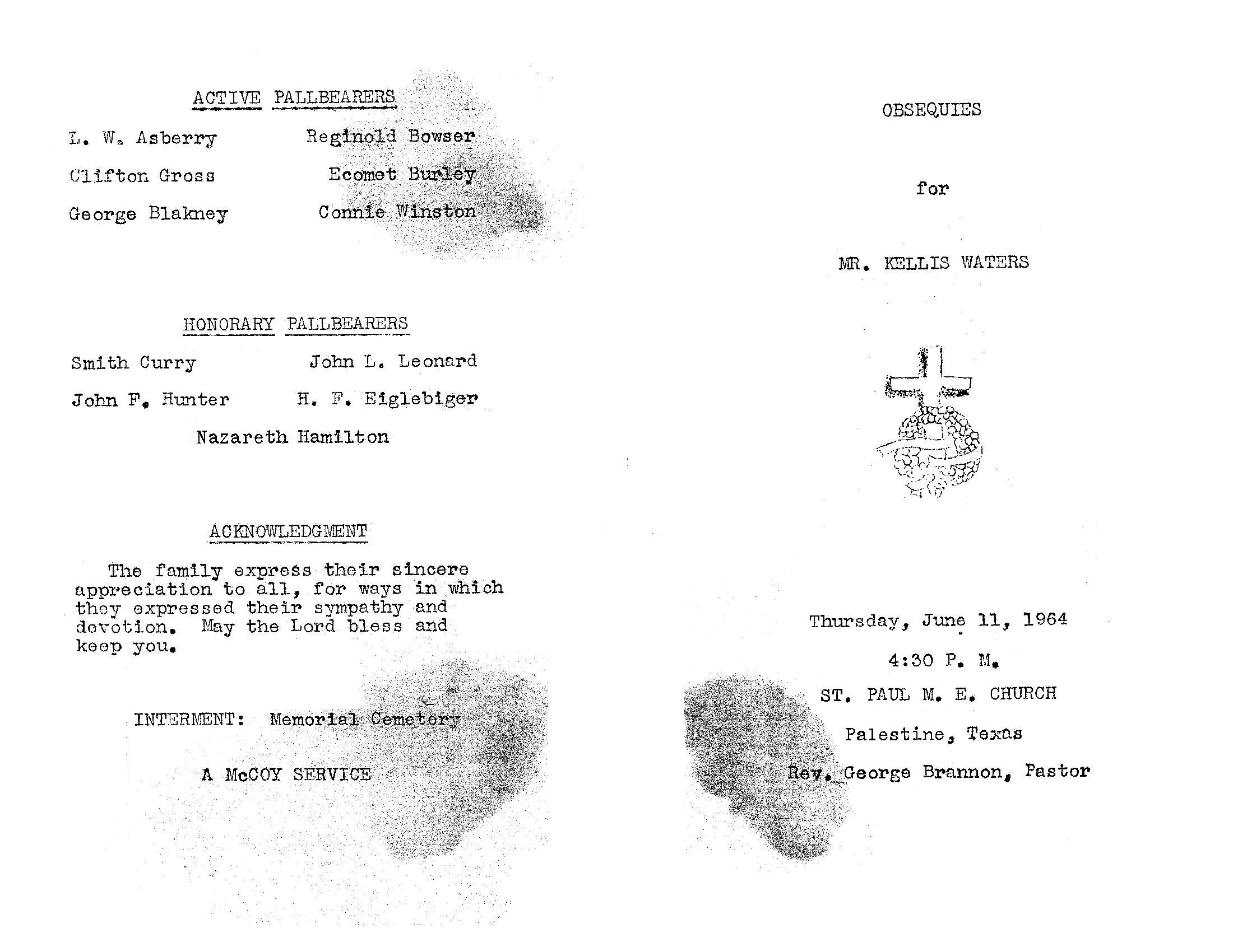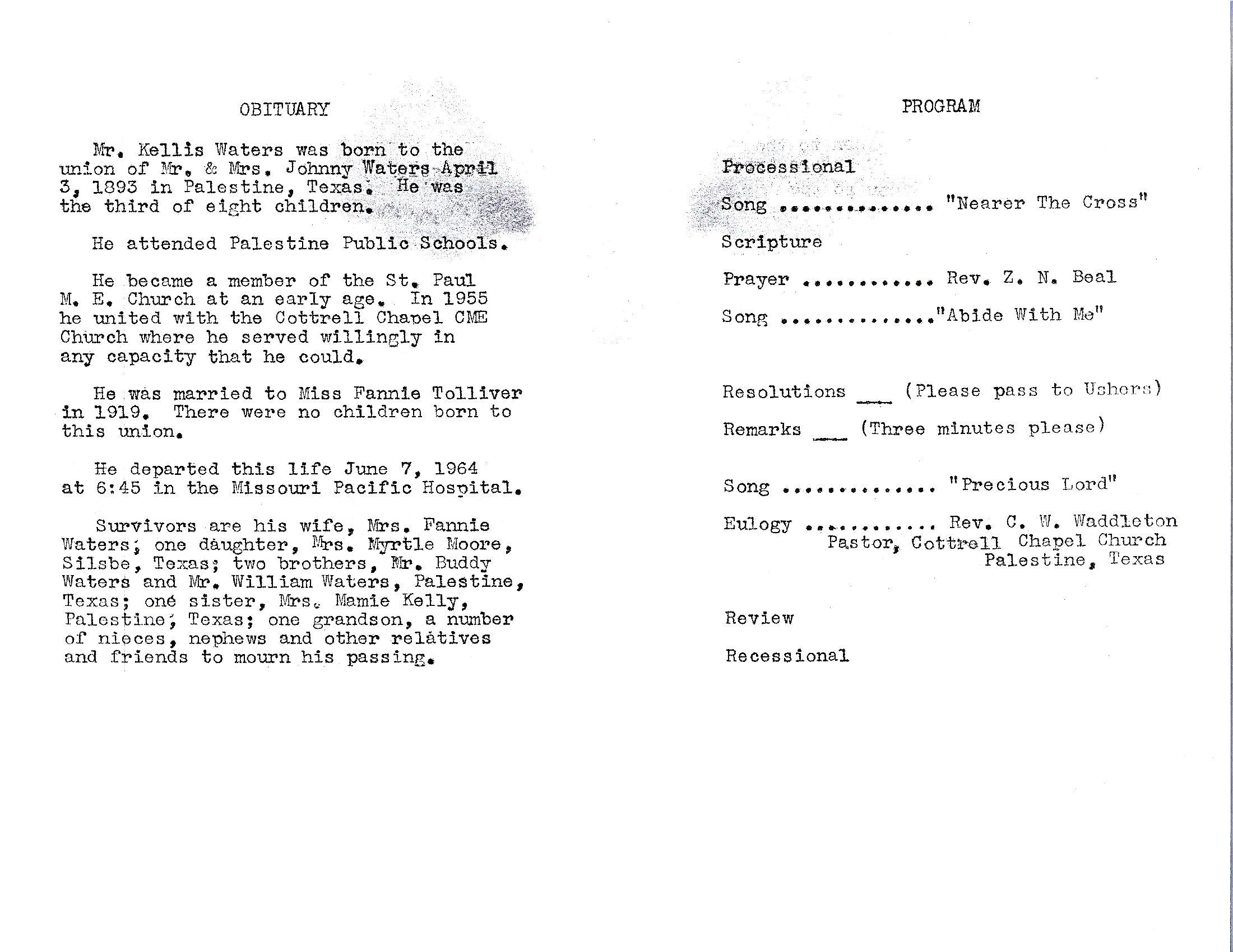 Mr. Kellis Waters was born to the union of