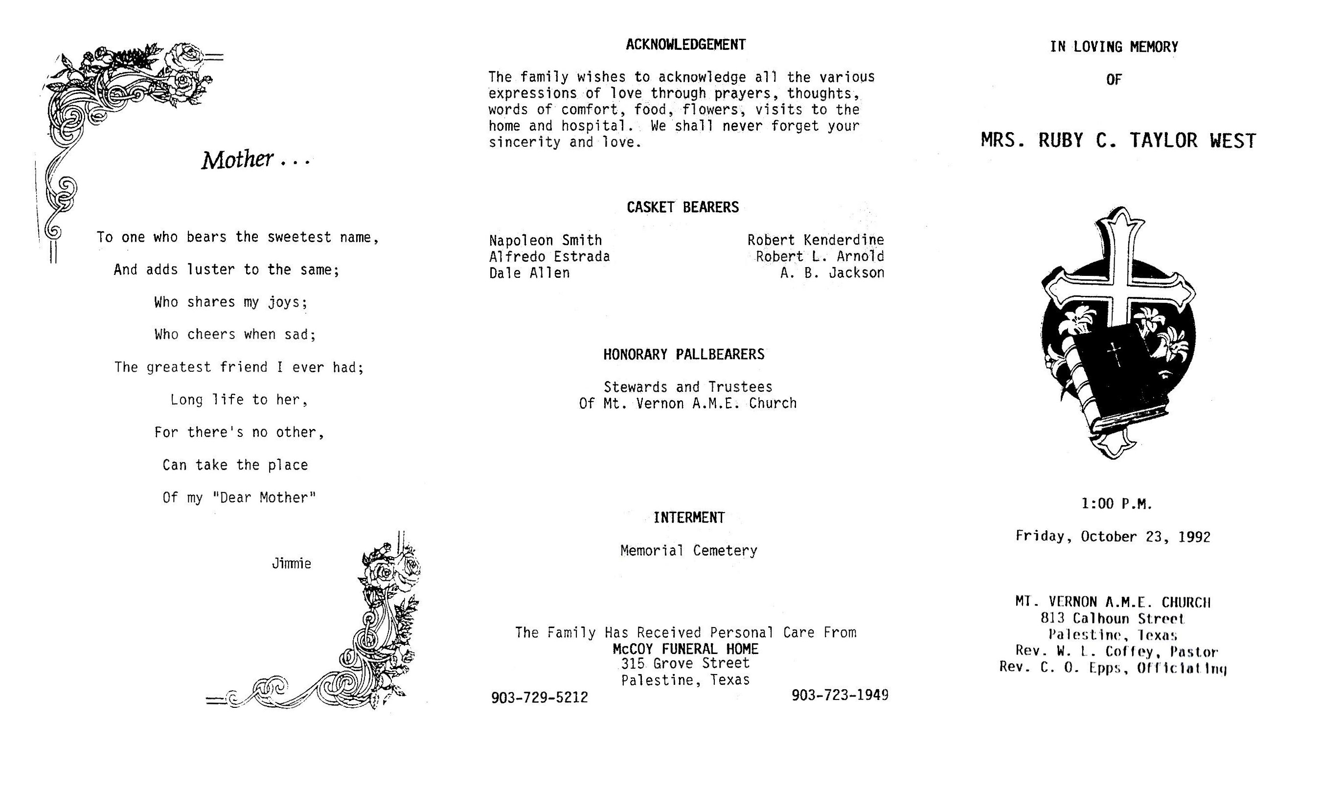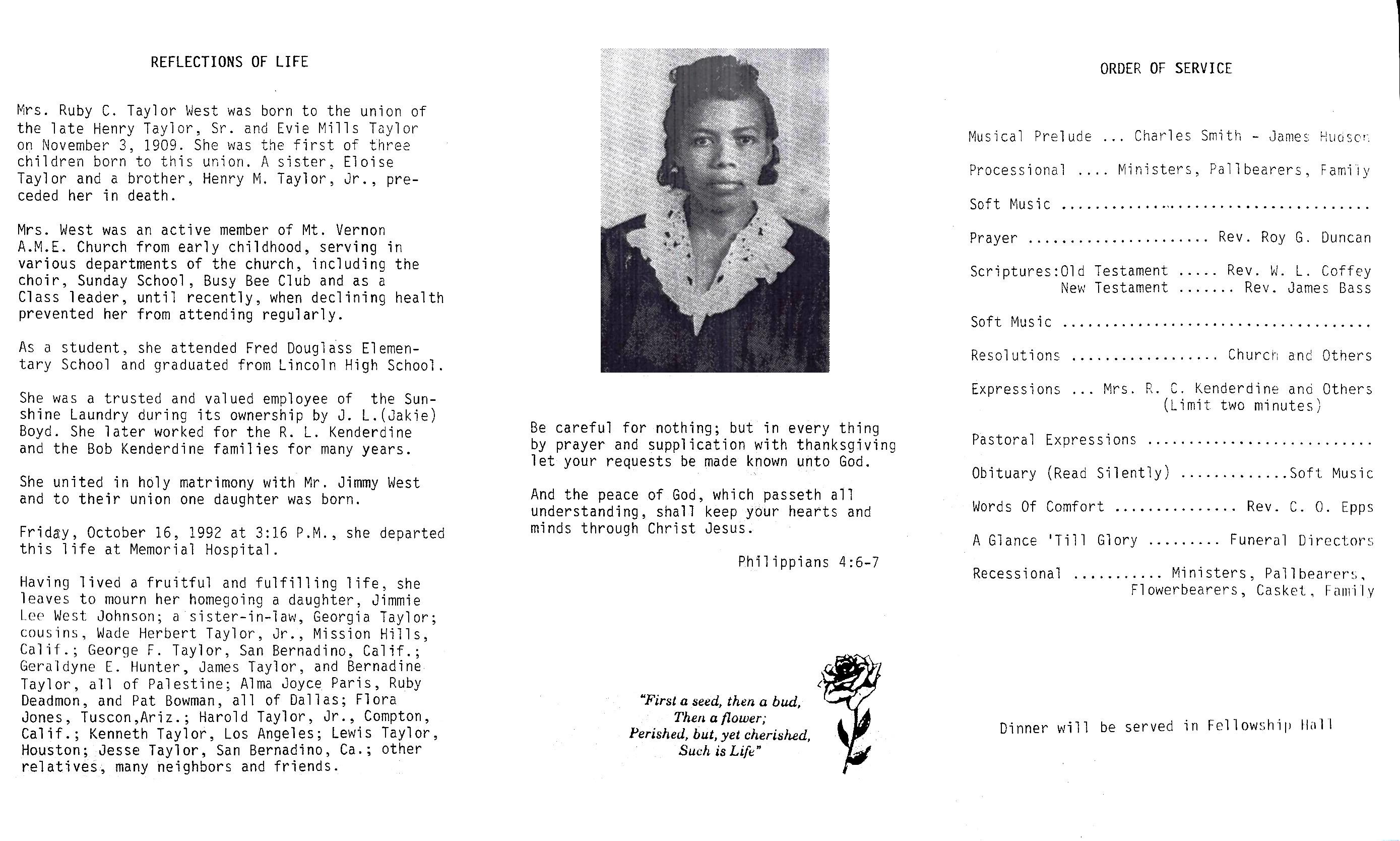 Mrs. Ruby C. Taylor West was born to the