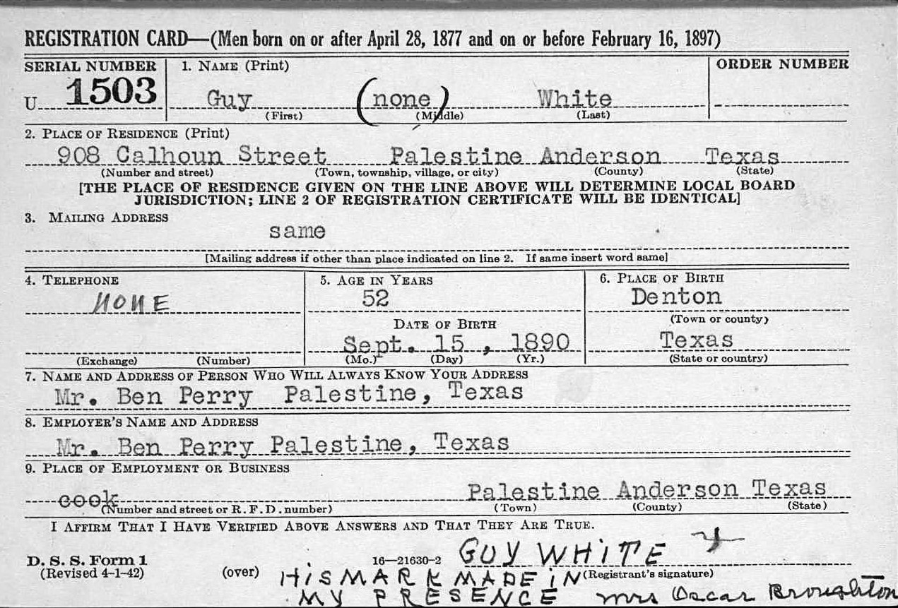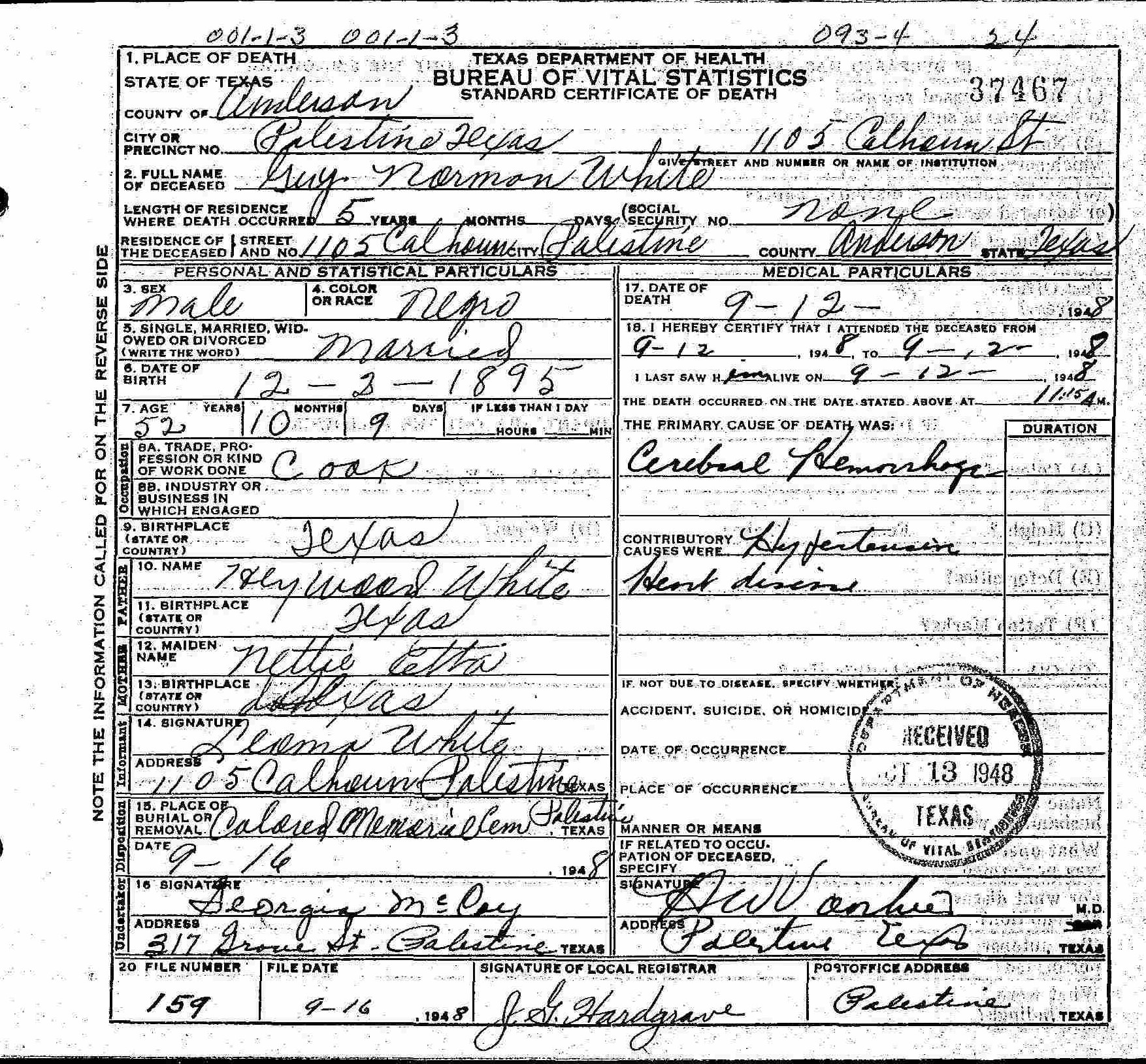1895 - Texas Died: 12 September 1948 - Palestine, Anderson,