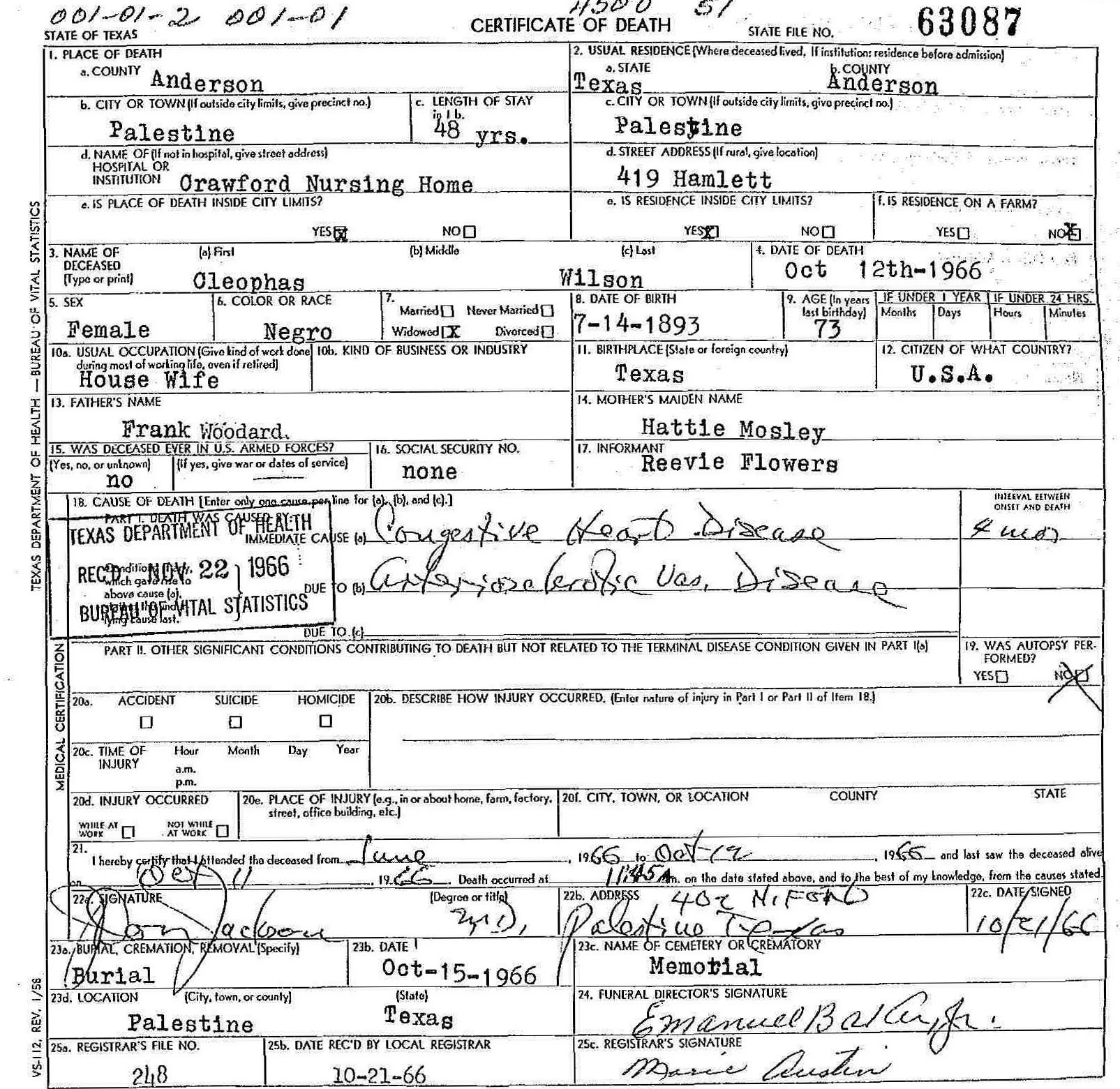 Crawford Nursing Home - Palestine, Anderson, Texas