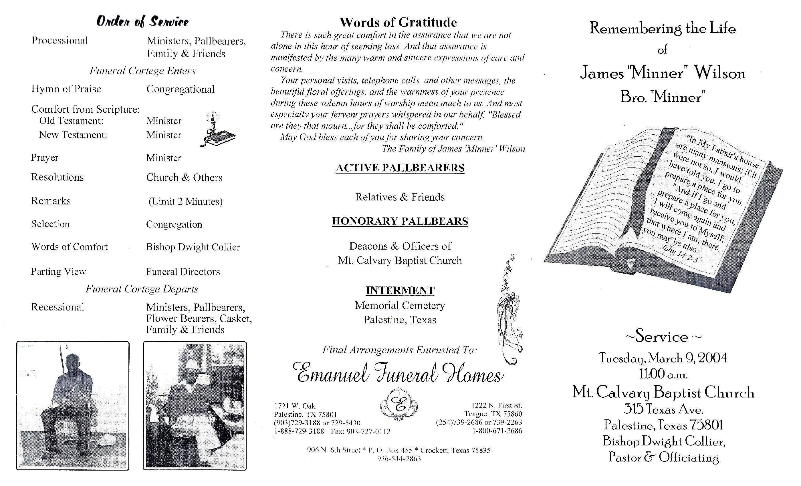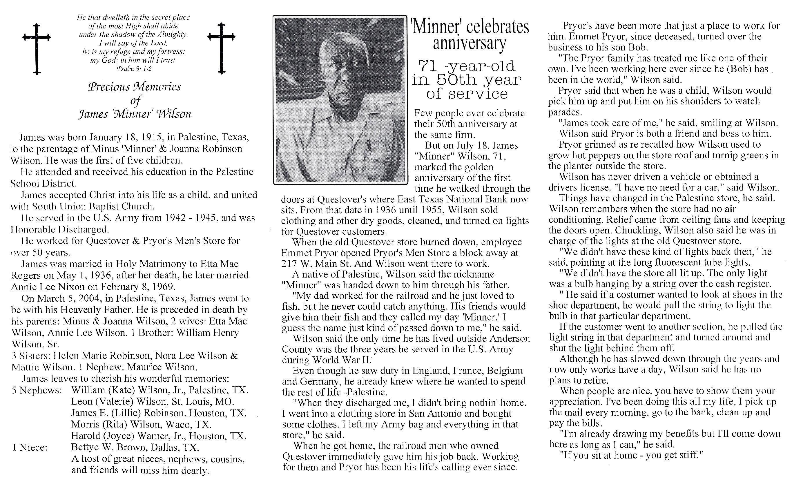 PRECIOUS MEMORIES OF JAMES 'MINNER' WILSON James was born January