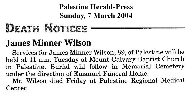 Palestine, Anderson, Texas Died: 5 March 2004 - Palestine