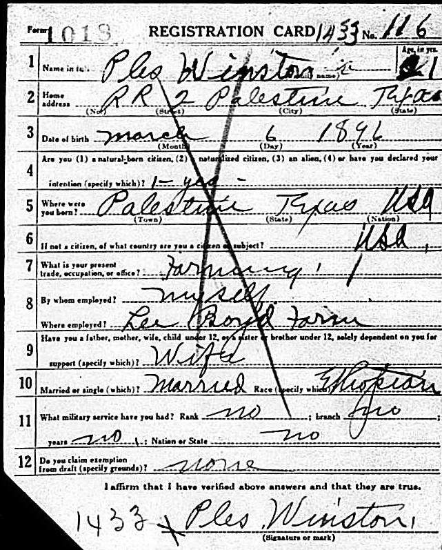 Born:  6 March/15 April/23 October 1896/16 June 1901 - Texas