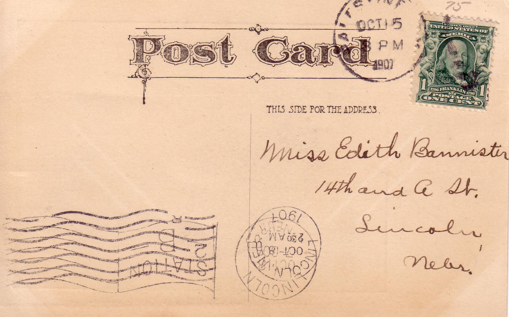 Postcard sent to Miss Edith Bannister