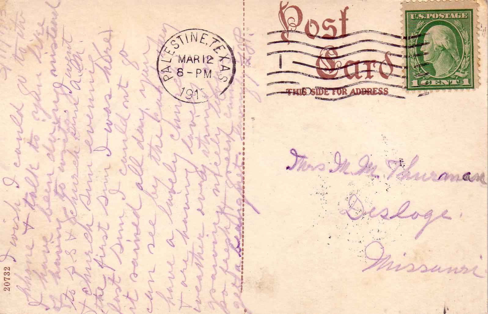 Back of postcard with date. |