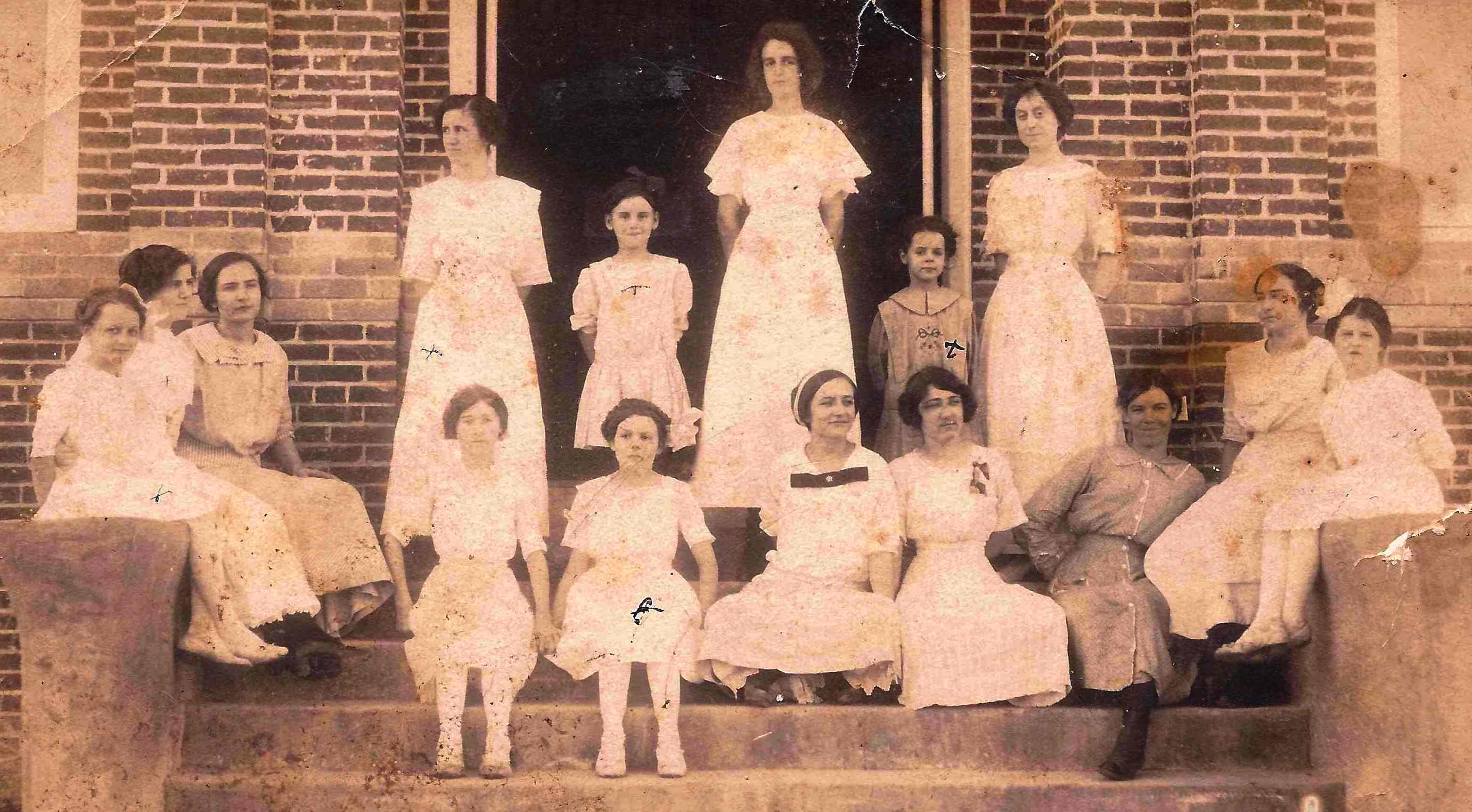 Photo #0015 - Unknown group of girls/students? in front of brick building. |