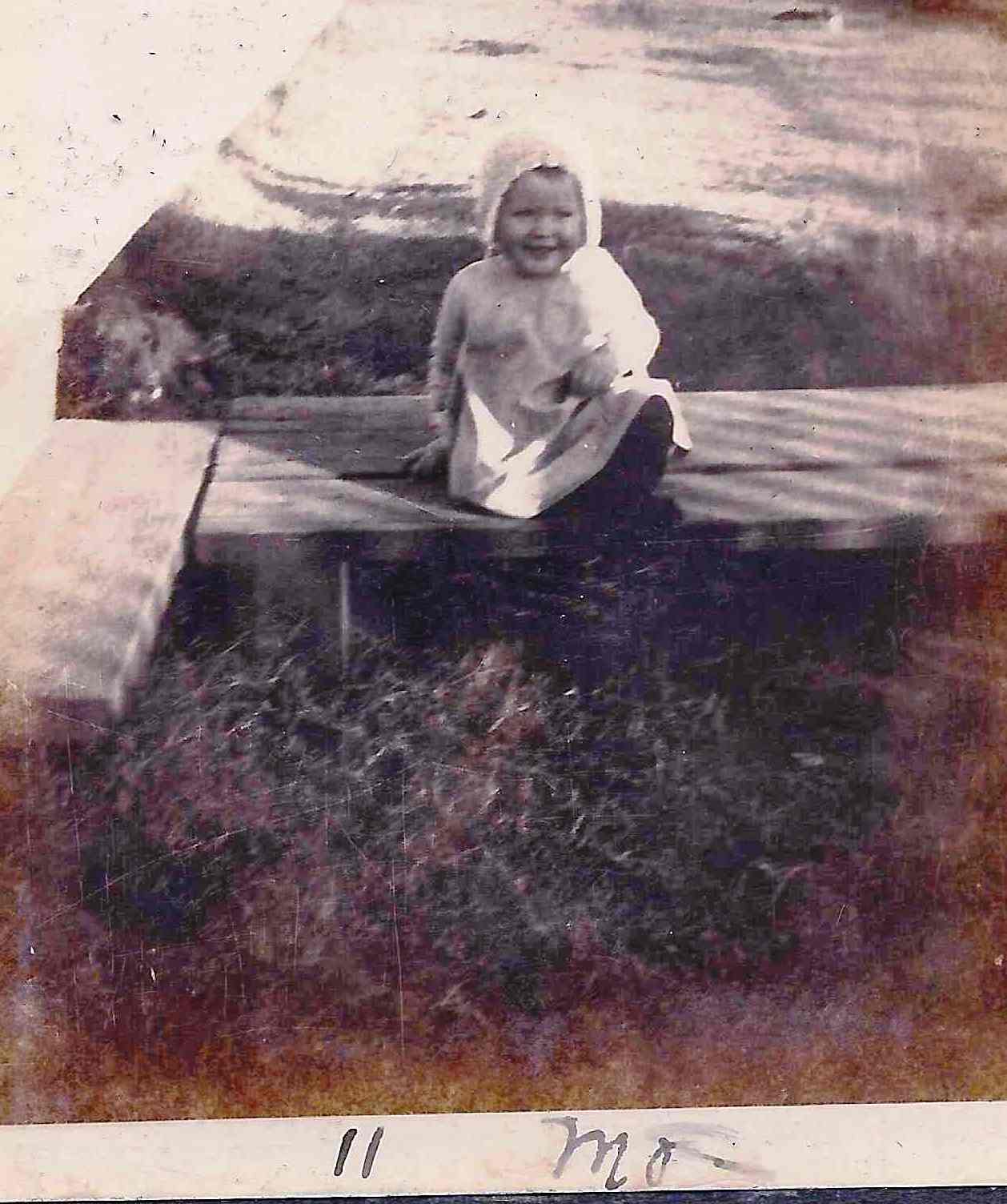 Photo #0060 - a 11 month child sitting on a bench |
