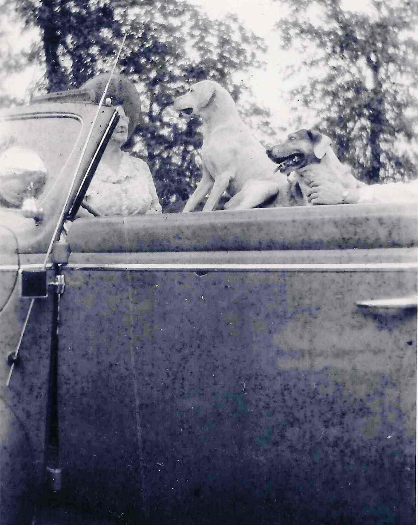 Photo #0090 - Two dogs in a car with a older lady in a hat |
